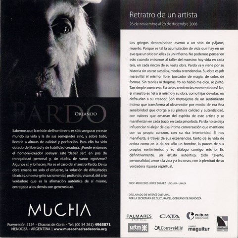 Información adicional: Catalogo Homenaje a Pardo Orlando y un merecido reconocimiento a Chela Arce por su aporte a la Cultura por la Fundación La Rural en 2013 MENDOZA - Catalogo Muestra en Bodega Navarro Correas Catalogo Galería Mucha de Chacras de Coria- Catalogo de UTN de Hombre entre Mujeres